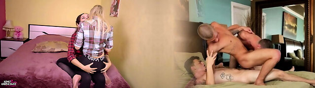 Hot Taut Pussy Horny Brunette takes his BFF who is an incredibly hot Redhead for Scissoring Orgasm
