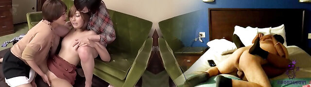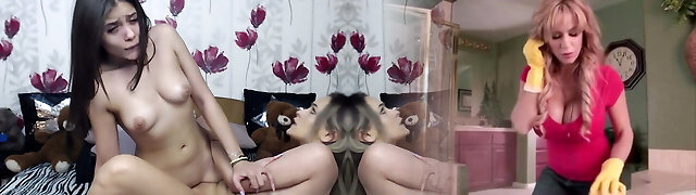 Pretty girl/girl is masturbating by the fireplace and then her lesbian acquaintance comes to join her