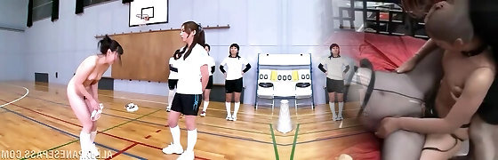 Japanese girls on the volleyball team haze a fresh member with a strapon