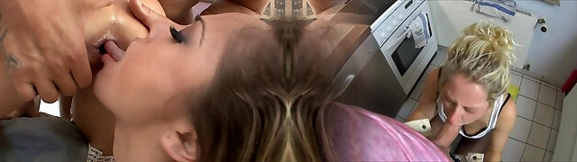 The next horny fan - threesome with Tina and Rosella! Aficionado banged us alternately, with jizz swapping and pussies fisting!