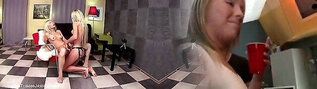 Lesbian foursome on the sofa with kinky Blonde Gabie and Scarlet