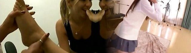 Domineering MILF Guides Two Teens Into Lesbian Strapon Intercourse