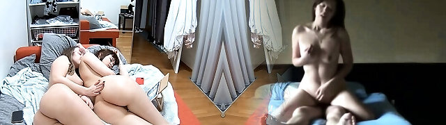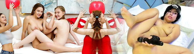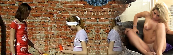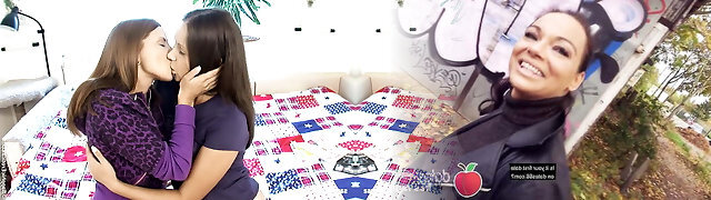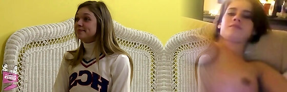 Cute teenies are playing on PlayStation and playfully start smooching, exploring lesbian adventures