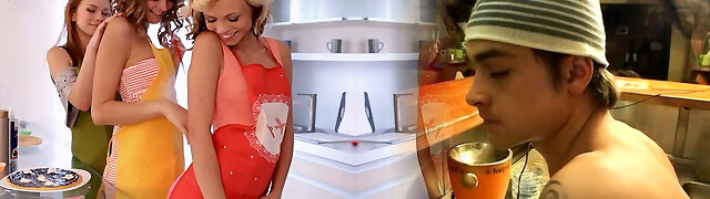 Foxy kittens poke the biggest belt stiffys and spray jism all o