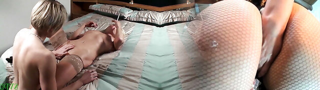 Magnificent lesbian cowgirl gets an oily rubdown before getting her gash stroked with a vibrator