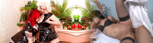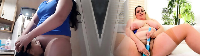 Lesbian Sexy Play and Tease - curvy MILFs in Vinyl pussy eat, big ass play, fingering (Arya Grander)