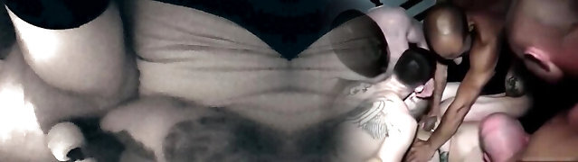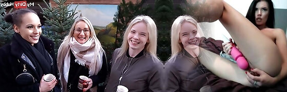 Lesbo orgy filmed in the shower as beautiful whores masturbate their pussies with big long sex toys