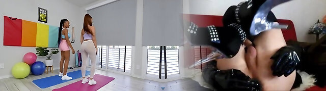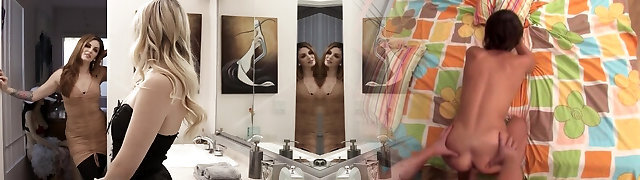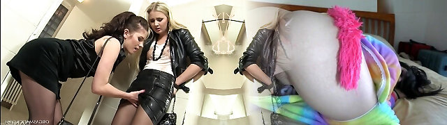 Lesbo Ariella Ferrara banging Brooke Johnson with a strapon