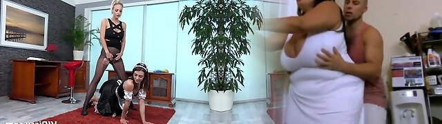 Two thick lesbian ladies allow the thin guy to help them out