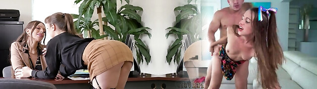 Super-steamy ass April Olsen and Tommy King have girl/girl sex in the office