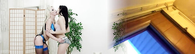 Gorgeous blondes take of their wondrous lingerie and fuck