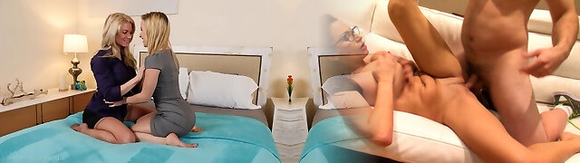 Serene Siren and Lilly Lit having super-cute lesbian sex on the bed