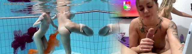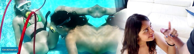 Violet Skye, Valentina Cruz And Amber Lynn Bach - Two Bare Nymphs Breath Holding Underwater In Pool