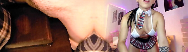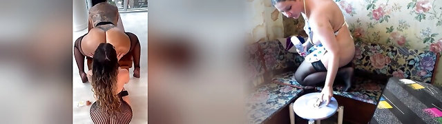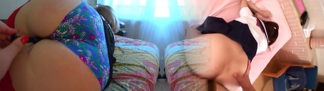 Morning ejaculation for a mature girlfriend with juicy butt in panties. Lesbian with hairy cunt. POV.
