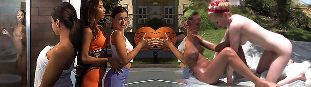Shy Brunette Gets a Lesson Of Blowjob And Torrid Lesbian Sex From Her Slutty Slim Towheaded Friend