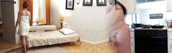 Fisting for fat girlfriend and licking furry pussy, lesbians with big asses together again.