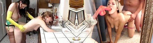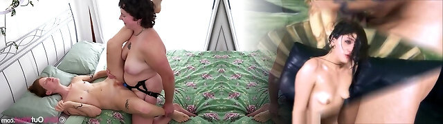 Gf with a strapon fucks a mature girl/girl. Doggystyle milf shakes with a fat ass with anal plug in a hole, shakes big boobs. Double penetration instead of mopping.