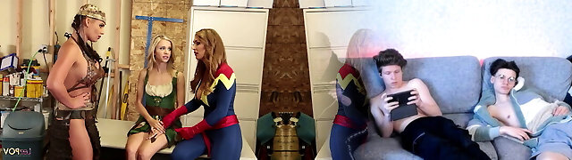 Cosplaying lezzies take advantage of the fresh blonde by starting a threesome filled with eating backside and scissoring