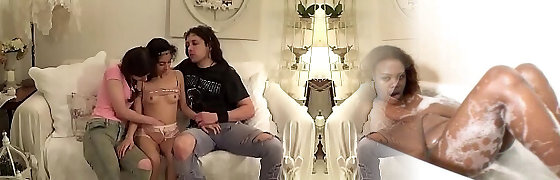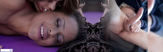 Having a cute babe laying in their bed makes it impossible not to have an multiracial lesbo threesome