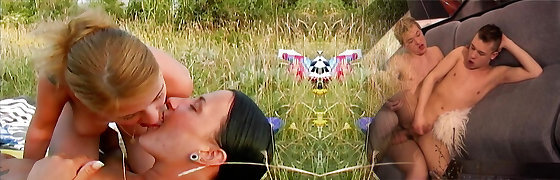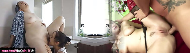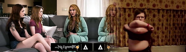 Busty MILF Joins Her Pretty Slim Stepdaughter & Her Brunette Best Friend In Hot Lesbian Three-some Perversions