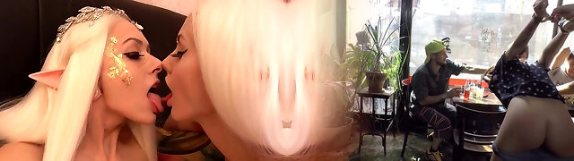 Cute teenies are playing on PlayStation and playfully start smooching, exploring lesbian adventures