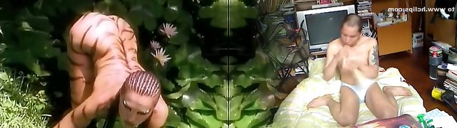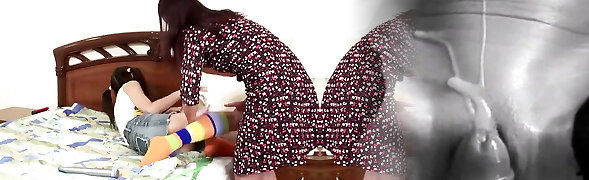 Wonderful German teen lesbians dildoing each others muffs in the bedroom