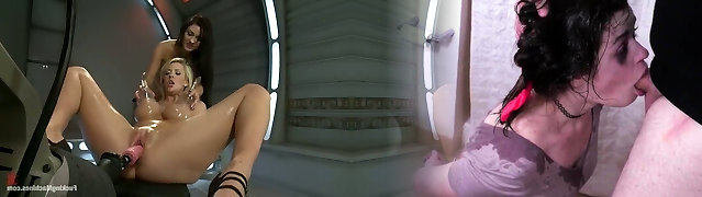 Steamy babes Sharing Dildo Fucking Machine