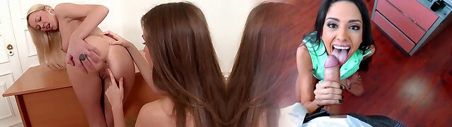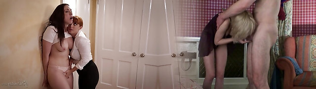 3 ANGRY LESBIANS: Super-steamy tight pussy redhead with short hair licks other lesbian cootchies for orgasm turns into threesome