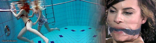 Beautiful chick Brooke jacking with wondrous Keisha in a small pool