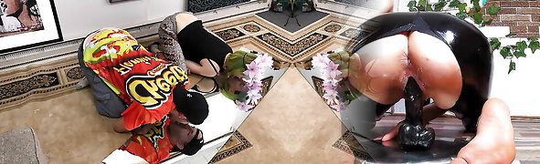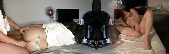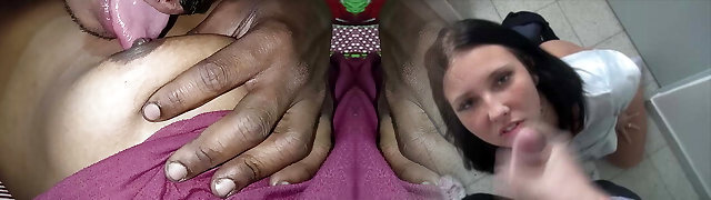Brunette is waiting for a prompt pizza delivery but for a nasty g/g honeypot licking and fingering too