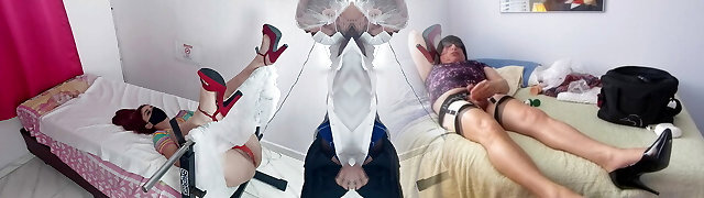 Rude redhead chief takes advantage of her submissive lesbian employee by wedging her with a strapon