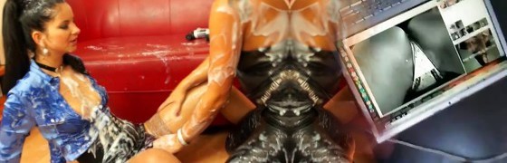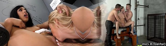 Skinny brunette college girl with diminutive tits and big nipples is pleased by her busty lesbian girlfriend