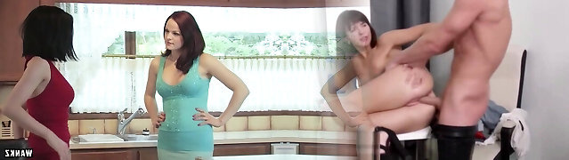 Monstrous tit blonde Milf has the hots for her goth stepdaughter