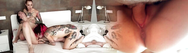 Two Tattooed Goth Girls Frigs Each Other's pussies