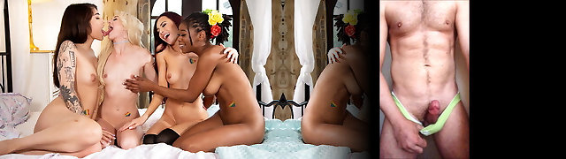 Having a cute babe laying in their bed makes it impossible not to have an multiracial lesbo threesome