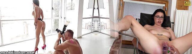 Dispelled stepmother is filmed by her stepson when no one else is home, she keeps flashing off her ass when she notices, hot and yam-sized-tailed.