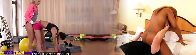 Lezzies lick each other's pussies in the gym instead of their workouts