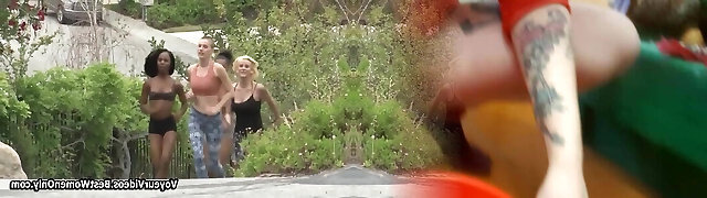 Incredibly wild lesbian three-way drill on the terrace with hot babes