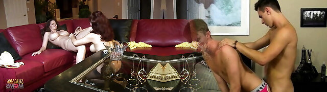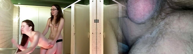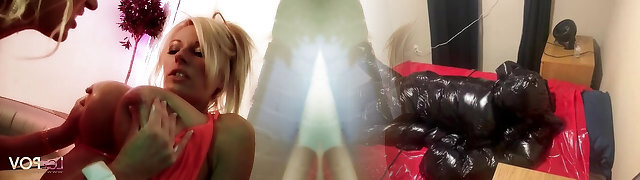 A pregnant milf jumps on a lesbian, inserting a strapon in wooly pussy. Natural breasts and juicy ass POV.