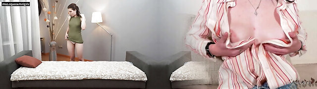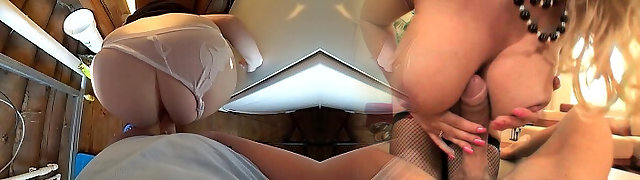Girlfriend with a strap-on fucked a fat cougar before going home. Mature lesbos Pov and shaking big booty in panties and saggy tits.