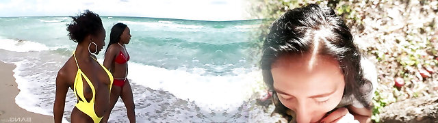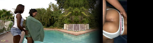 Swimming is done and the black lesbos run inwards to take out their fuck sticks and strapons for plowing