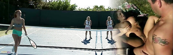 Lesbian chicks got fatigued of frolicking tennis so they jumped into a jacuzzi and started grabbing each other