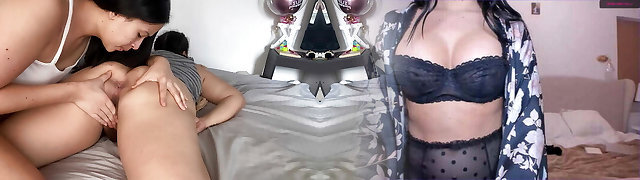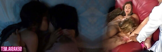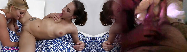 Romantic Evening with Stepsisters, Lesbian Smooching, Blowjob, Cum Kissing Girls - Home Movie Full