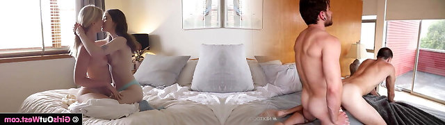 Husband and I fucked my girlfriend - strapon, oral, cum-shot, ffm threesome Amateur Teen Kira Green