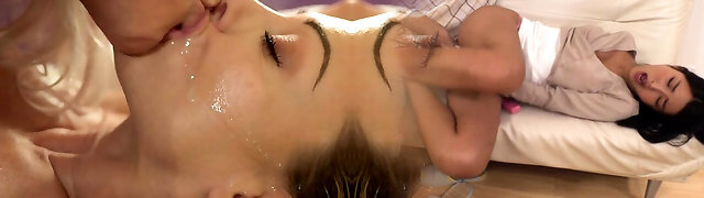 Romantic Evening with Stepsisters, Lesbian Smooching, Blowjob, Cum Kissing Girls - Home Movie Full