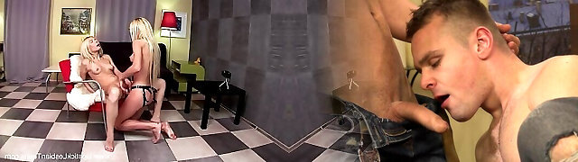 Fake Hostel - Slim blonde babe tied up and fucked by Futa MILF cock in bidy stocking with sucky-sucky and slit internal ejaculation orgasm