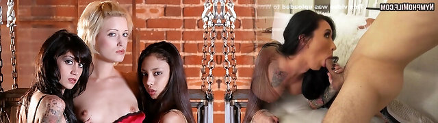 Trio of goth girls strap on sex