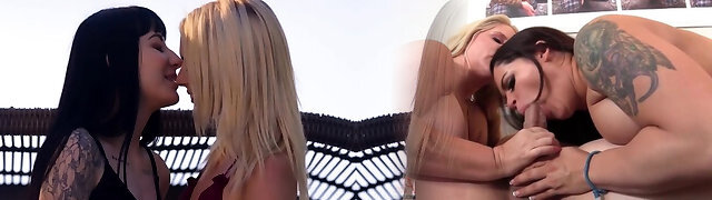 Belt Dick loving goth babes finger each other