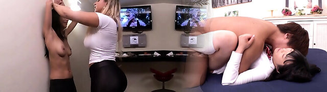A group of dykes lets loose while on a break by ravaging their hungry pussies with their thumbs