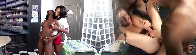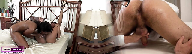 Turned on by her jiggish partner the naughty black lesbian milf settles with intense masturbation